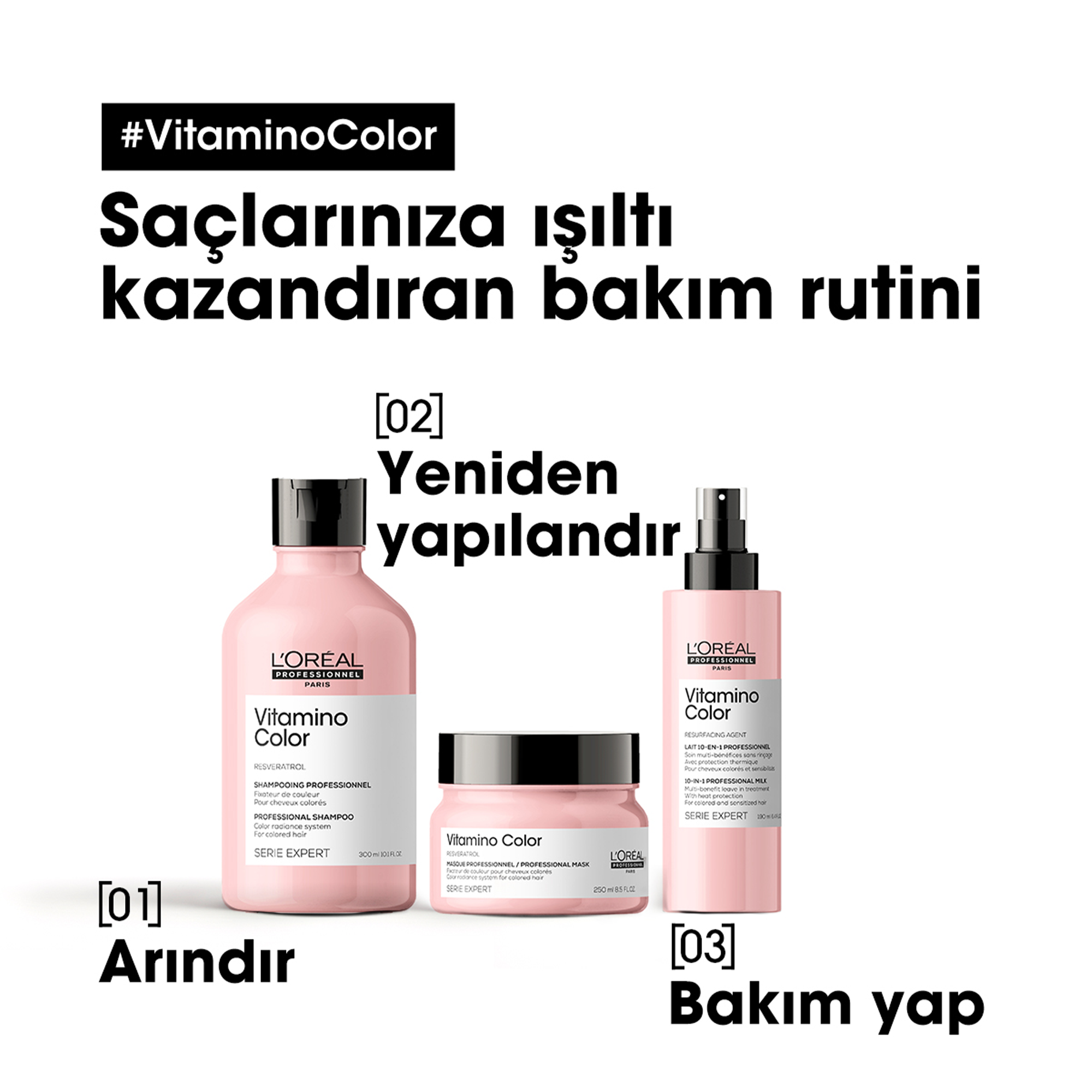 Yenilenen Vitamino serisinin en çok yönlü ürünü olan bu bakım spreyi, boyalı saçların ihtiyaç duyduğu korumayı tek adımda sağlar. Antioksidanlarla zenginleştirilmiş profesyonel formülü sayesinde saç renginin canlılığını korur, saç tellerini güçlendirir ve dış etkenlere karşı bariyer oluşturur.